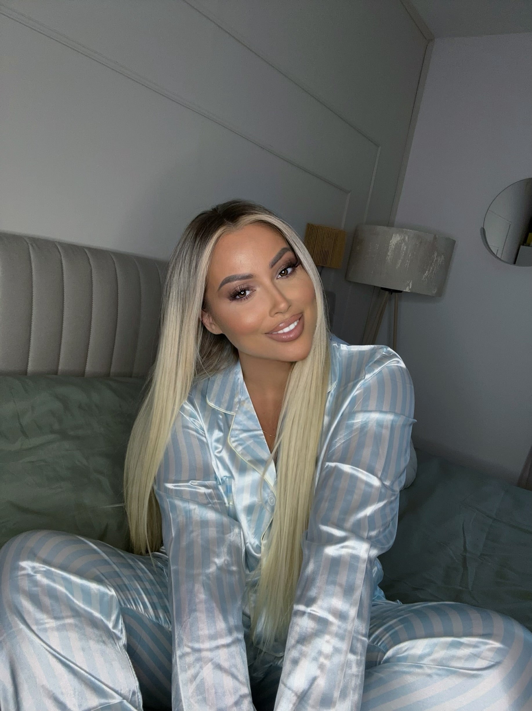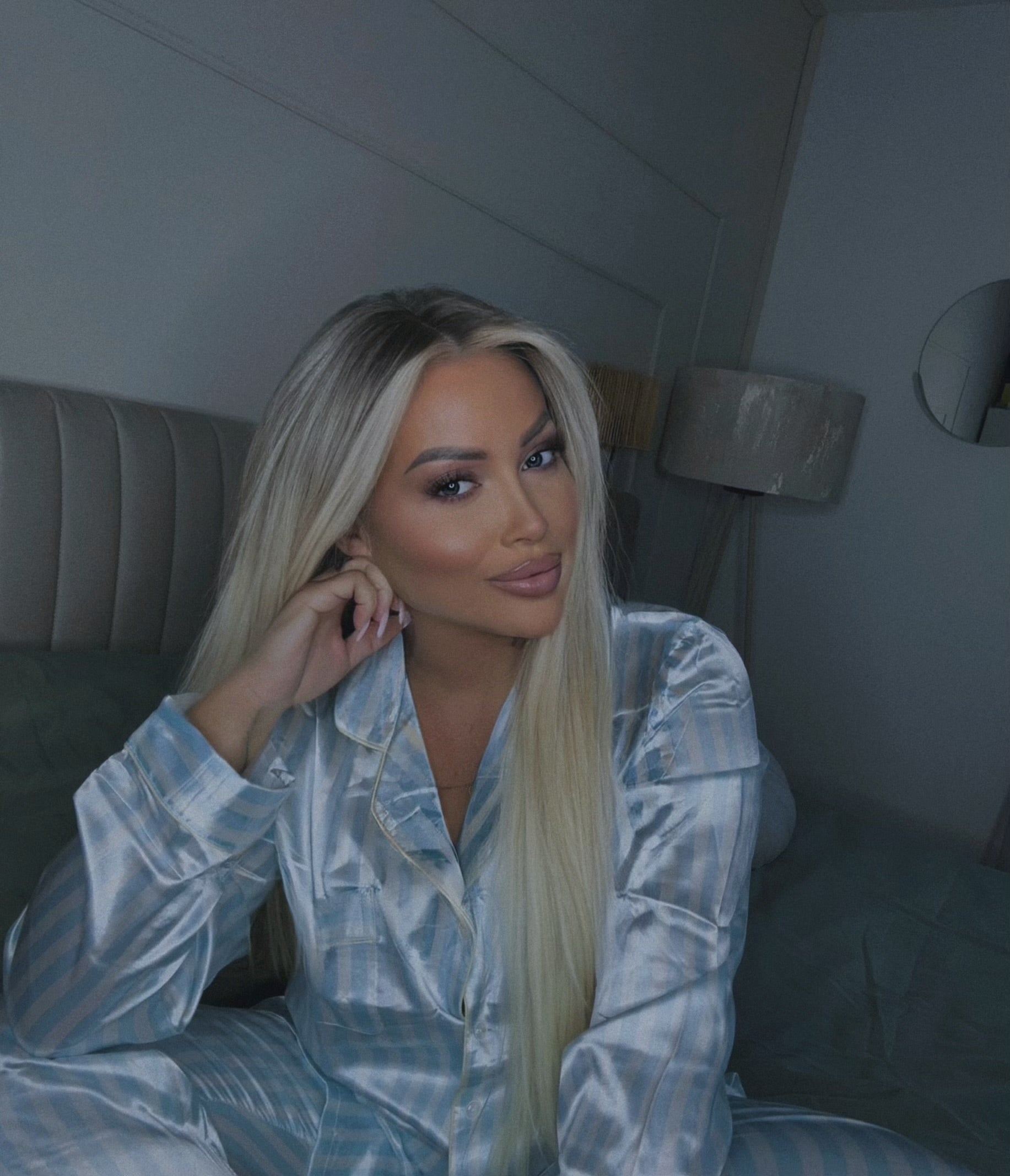 🌙 Satenska pidžama „Sky Dream” – Plavo-bijele pruge